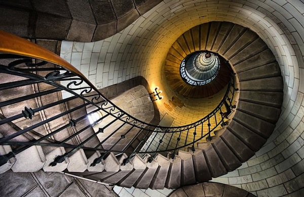 旋轉(zhuǎn)的幾何美感,好像有著特殊的吸引力想要把人吸進(jìn)去。攝影師們最?lèi)?ài)拍這種樓梯了吧。